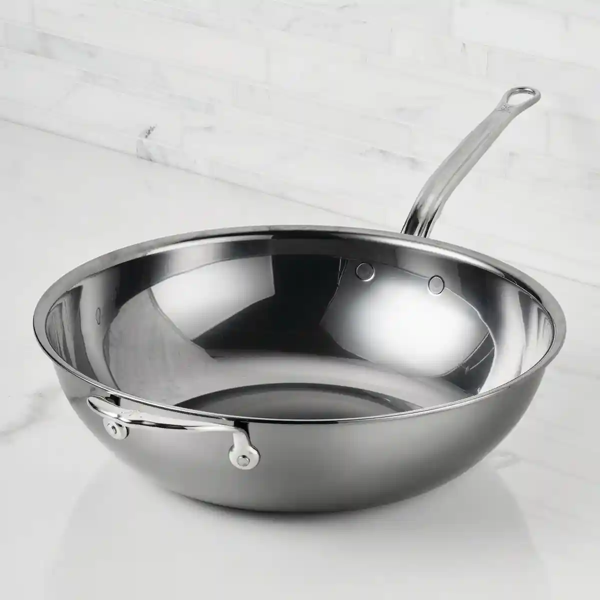For groundbreaking innovations in cookware, equip the kitchen with the Hestan NanoBond Molecular Titanium Stainless Steel Chef's Pan. This high performance 14-inch Chef's pan is designed to heat quickly and thoroughly for better browning, stir frying, sautéing, and simmering. Hestan’s innovative cookware technology, Molecular Titanium, bonds thousands of titanium nano-layers to 18/10 stainless steel construction, creating a brilliantly resilient cooking surface that is 4X harder than typical stainless steel, making the everything pan resistant to scratching, staining, and salt pitting.