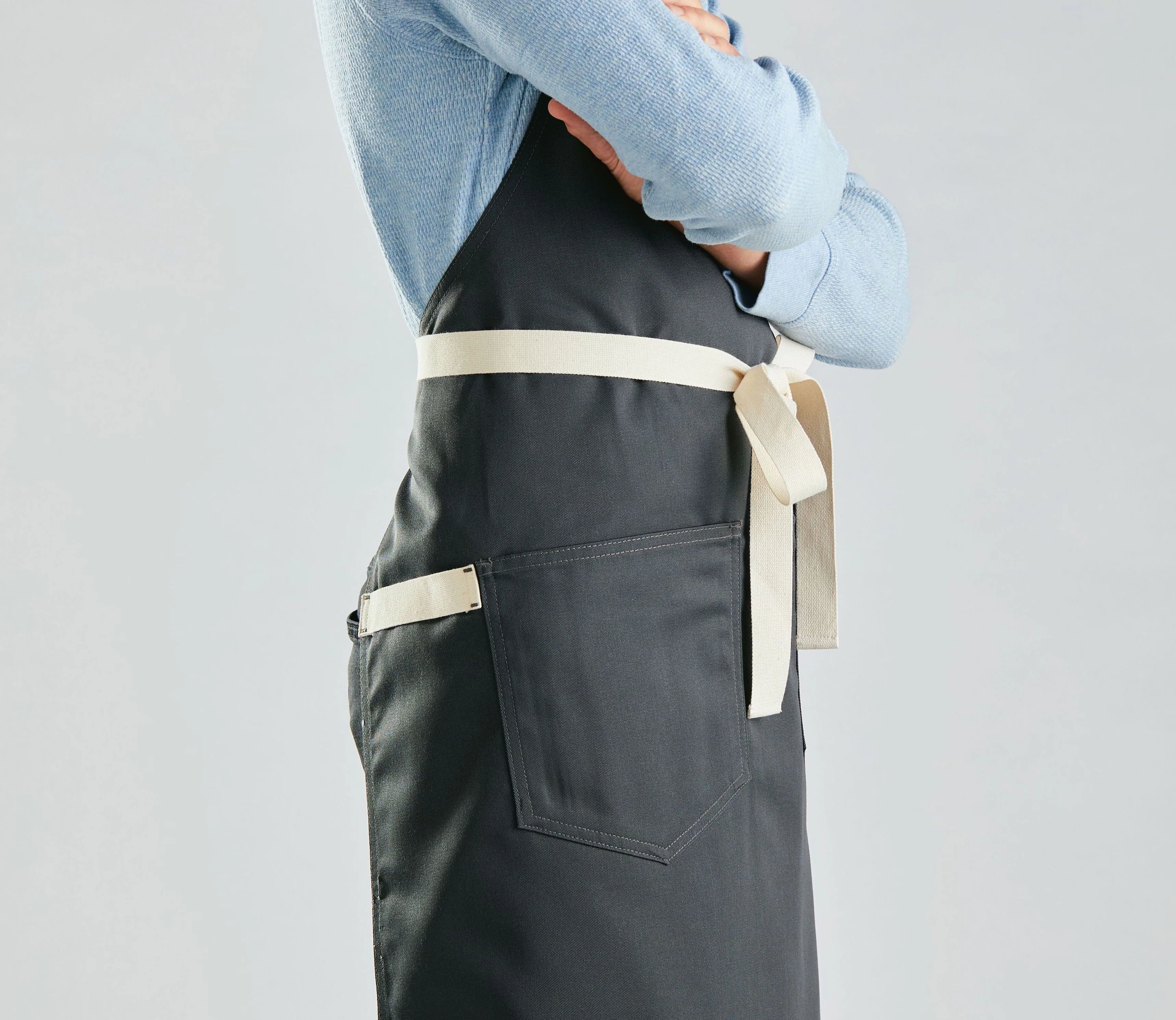 - Extra long waist ties for securing the apron in front or back