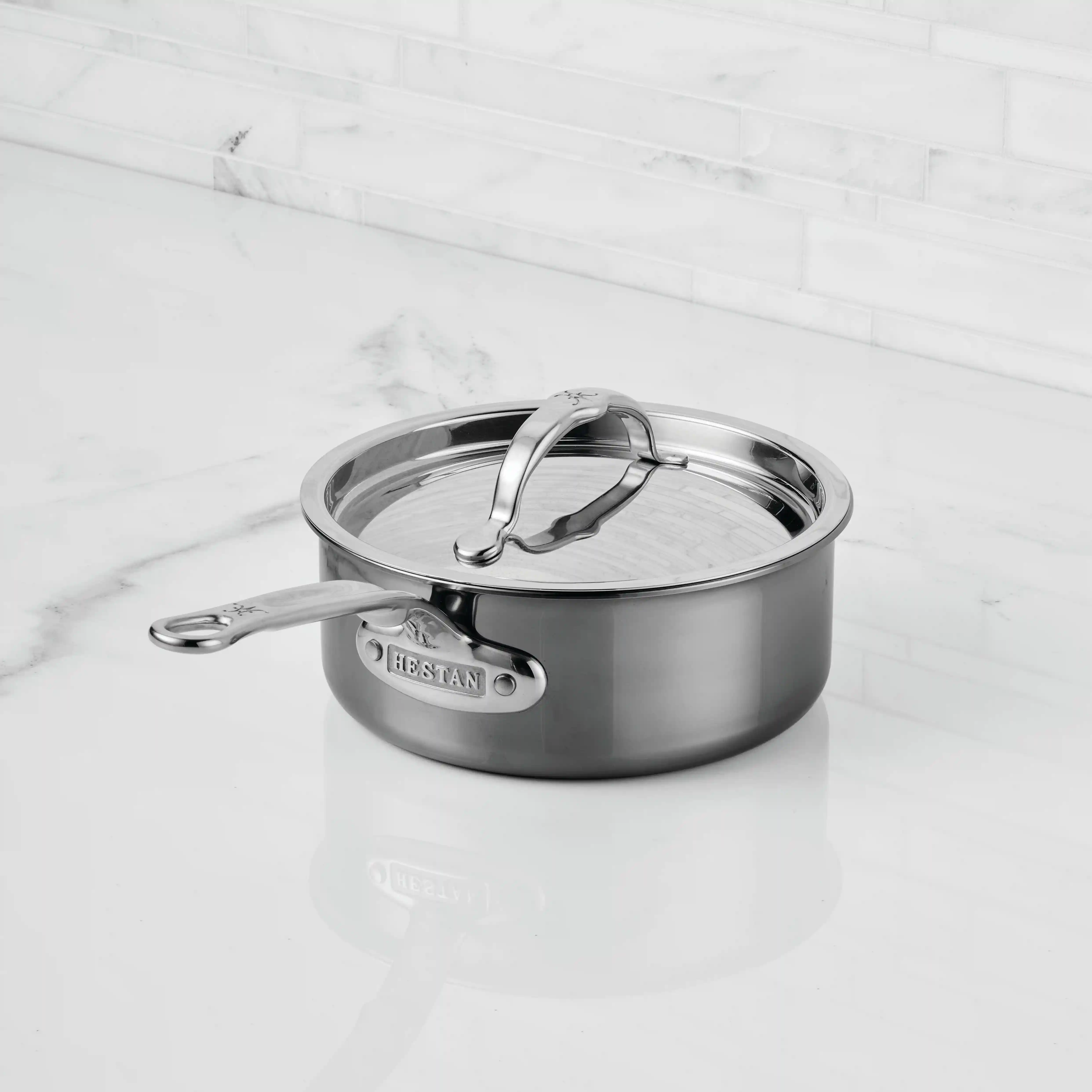 For groundbreaking innovations in cookware, equip the kitchen with a Hestan NanoBond Molecular Titanium Stainless Steel Saucepan. Available in 4 sizes, this lightweight saucepan is designed with a wider base for efficient heating and stirring, and sealed, flared rims for precision pouring. Molecular Titanium bonds thousands of titanium nano-layers to the 18/10 stainless steel construction, creating a brilliantly resilient cooking surface 4X harder than typical stainless steel, making it resistant to scratching, staining, and salt pitting.